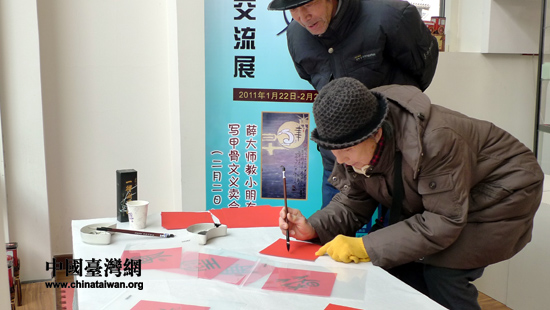 有興致的顧客也在民俗小店里揮毫為兔年討個好彩頭(中國臺灣網 李徽 攝)