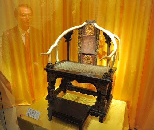 圖為展出的清太宗皇太極御用鹿角椅。圖片來源:“中央社”