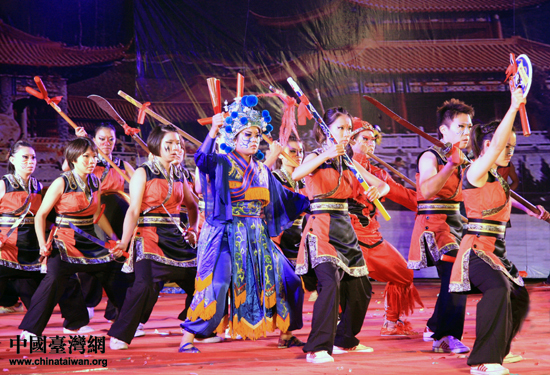 中國臺灣網10月15日株洲消息 10月14日晚,海峽兩岸民俗文化展演盛裝亮相湖南省株洲市炎陵縣。作為“2011年海峽兩岸炎帝神農文化祭”系列活動的一部分,本次展演由兩岸演員攜手同臺,共展兩岸多彩的神農文化和民俗風情。