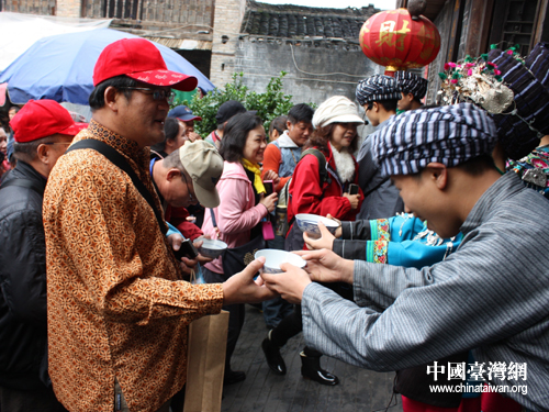 苗家阿哥向臺(tái)灣同胞敬酒(圖片來源:湖南省臺(tái)辦)