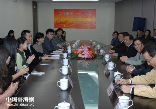 上海市委常委楊曉渡等領導與臺灣學生座談(上海市臺辦 葛鳳章 攝)