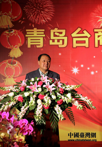 青島市臺(tái)灣同胞投資企業(yè)協(xié)會(huì)會(huì)長(zhǎng)官俊博致辭。(圖片來(lái)源:青島市臺(tái)辦)