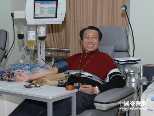 正在獻血的陳澤人。(葛鳳章 攝)