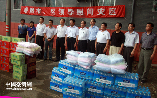 25日下午,北京市臺辦和北京臺資企業協會負責人來到深受水災困擾的重災區房山區河北鎮,向暴雨受災群眾捐贈了1000條毛巾被、1000箱礦泉水和1000箱方便面等一批急救物資。(中國臺灣網 高斯斯 攝 )