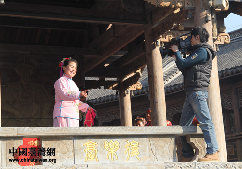 攝制組拍攝棗莊柳琴戲。(圖片來源:棗莊市臺辦)