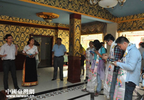 中國臺(tái)灣網(wǎng)8月16日九寨溝消息 日前,參加2013海峽兩岸記者“錦繡天府行——感受藏區(qū)新生活”聯(lián)合采訪活動(dòng)的兩岸媒體記者前往九寨溝縣白河鄉(xiāng)芝麻南岸村和永豐鄉(xiāng)菜園村采訪,了解發(fā)展鄉(xiāng)村旅游、推動(dòng)文化產(chǎn)業(yè)等情況。