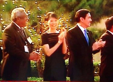 表演團體穿過臺前,對著馬英九打招呼,這時候馬英九還在低頭看資料,渾然未覺,夫人發(fā)現(xiàn),立刻用力頂了馬英九的手臂,馬英九這才趕緊擠出笑容,揮手致意,但可能是與王金平會面,氣氛實在太緊張,馬英九不斷猛摳手指,還有點恍神,這時周美青又再度撞了撞馬英九的手肘,要他往前看,周美青不斷跟王金平聊天,一旁的馬英九超好奇,不斷靠過去想偷聽他們在說什么。