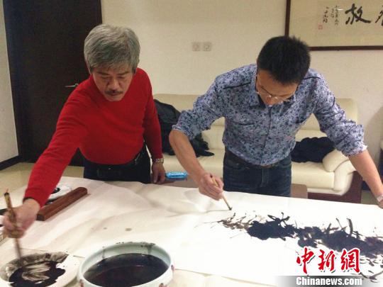 北京臺(tái)灣藝術(shù)交流座談會(huì)10月31日舉辦,兩岸藝術(shù)家交流經(jīng)驗(yàn),現(xiàn)場(chǎng)揮毫潑墨。圖為兩岸藝術(shù)家合作繪畫(huà)。曾鼐攝