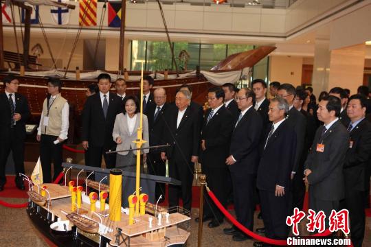 在張榮發(fā)基金會(huì)一樓,陳德銘一行還參觀了珍貴的清代船只模型。(完)