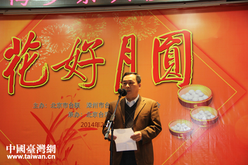 2014年2月13日,臺盟中央副主席、北京市臺聯會長蘇輝代表主辦單位向嘉賓致以節日問候。(中國臺灣網 楊永青 攝)
