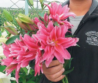 “每朵花像孩子,要用心呵護。”羅弘奇說,經過10幾次到荷蘭取經,逐年改善花況,從試種30個品種,今年已擴增到165個品種,有老虎百合、玫瑰百合、月光女神、鐵炮百合等十分吸睛。