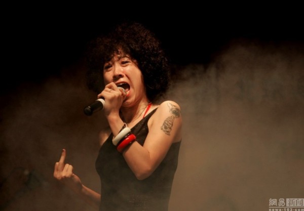 2006年7月8日,北京朋克四人樂隊“潛艇”的主唱毛康(音譯)在演唱會上表演。