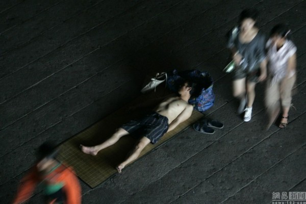 2007年7月6日,夏夜的北京西站廣場上,一名等火車的乘客席地而睡。