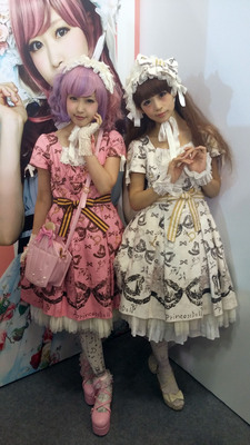 2015臺灣漫博會8月9日有近100名穿著蘿莉裝扮的民眾,在臺灣東販攤位排隊,為的就是要見到日本以蘿莉裝扮出名的雜志模特兒木村優(yōu)(左)、深澤翠(右)一面。來源:臺灣“中央社”
