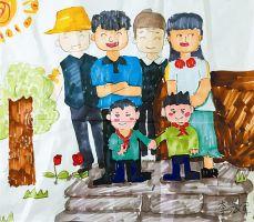 而那之后,在媽媽的鼓勵之下,畫全家福竟成了每年春節的一個固定節目。和照相館里那些千篇一律的全家福不同,隨著永軍的繪畫技巧在不斷提高,以及對家和愛的理解的加深,永軍的畫里加入了很多有趣的創意和可愛的奇思妙想。弟弟曾經不止一次驕傲地說,哥哥畫的全家福,比照相館里的好一萬倍。永軍筆下的全家福里,記錄著生活的喜悅:兄弟倆都考了雙百,地里的莊稼大豐收,家里買了大電視,自己考上了大學、結婚生子……