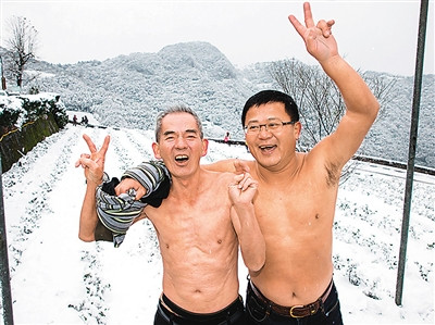 面對罕見雪景,有民眾脫衣狂歡,感受難得一遇的低溫。