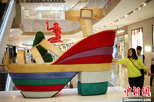 5月5日,一只按照原型比例放大的涼鞋亮相南京德基廣場,引來市民們好奇的目光。中新社記者 泱波 攝