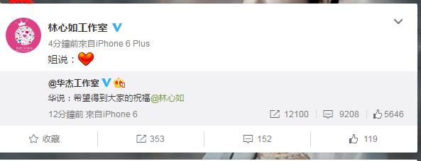 中新網(wǎng)5月20日電 今日,霍建華工作室官方微博發(fā)布一條消息,稱“華說:希望得到大家的祝福。”并艾特了林心如。隨后,林心如工作室官方微博轉(zhuǎn)發(fā)微博,發(fā)表紅心默認(rèn)。
