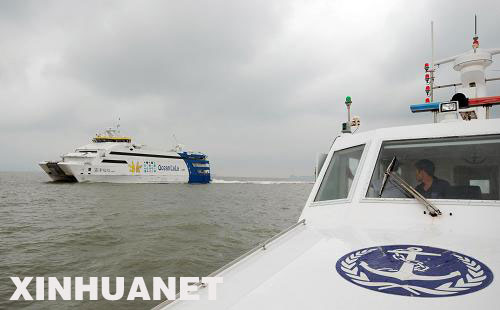 當日,臺灣郵輪“海洋拉拉號”搭載300余位浙江臺州各界人士從臺州港大麥嶼港區(qū)客運碼頭出發(fā),直航臺灣。這是兩會簽署相關(guān)協(xié)議后浙臺海上客運的首航。新華社發(fā)(郟策 攝)