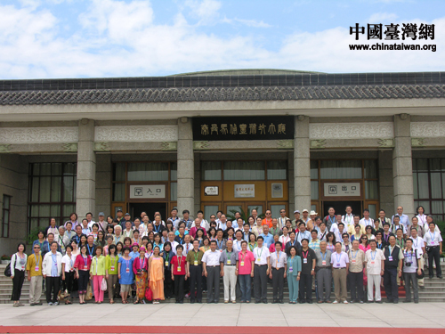“情系長安——兩岸文化聯誼行”全體嘉賓在秦兵馬俑博物館前的“全家福” (中國臺灣網 蕪同 攝)