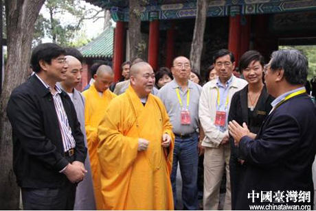 觀禮團成員與少林寺方丈釋永信交流 圖片來源:河南省臺辦