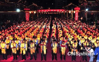 11月2日晚,莆田中華媽祖文化研究院舉行“兩岸千人頌媽祖”活動,兩岸信眾千多人同聲朗誦《湄州媽祖金身巡安興化頌文》,鼓罄和鳴,媽祖精神,兩岸同心。當晚現場千盞紅燈為主辦方之一的臺灣鹿港天后宮主委張偉東訂制贈與,表達對“兩岸千燈迎媽祖”禮敬之意。當晚,湄州媽祖金身巡游駐蹕典禮在莆田中華媽祖文化研究院舉行。 中新社發 張麗君 攝