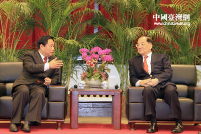 中華全國臺灣同胞聯誼會會長梁國揚一行,1日在臺北拜會了中國國民黨榮譽主席連戰。梁國揚向連戰介紹了全國臺聯的有關情況以及在臺北舉行的“2010中國國粹油畫藝術精品展”。連戰表示,全國臺聯梁國揚會長一行,不但是跟臺灣有歷史淵源,還有血緣、人緣、地緣。兩岸也本來就是同根同源,都是中華民族一分子,不能忘本。希望全國臺聯諸位能常回臺灣走一走,看一看。 (中國臺灣網 田云鵬 攝)