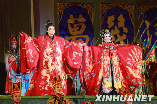 3月27日、28日晚,張藝謀版《圖蘭朵》連續兩日在臺灣上演,兩天的演出吸引了近三萬觀眾來到臺中洲際棒球場觀看。此次赴臺演出的制作團隊仍為“鳥巢版”《圖蘭朵》的原班人馬。劇中舞蹈及武術演員由臺灣體育大學近300名師生擔綱出演。由160人組成的中央歌劇院合唱團和80人的中央歌劇院交響樂團,與國立臺灣交響樂團、長榮交響樂團共同演繹劇中的合唱和樂隊部分。劇中重要角色“宣旨官”和20個“小沙彌”,也由在臺灣公開甄選的群眾演員扮演。這是兩岸迄今為止最大規模的文藝界攜手合作。新華社發(費斌攝)