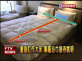 報道稱,姚明7月底將現身臺北,要迎接這位身高2米26的超級巨人,下榻飯店的規格當然要非常大。原本2米長的床,加長到2米40,寬度也從1米80增加到2米,一般人在上面翻滾兩圈半,都不會落地。
