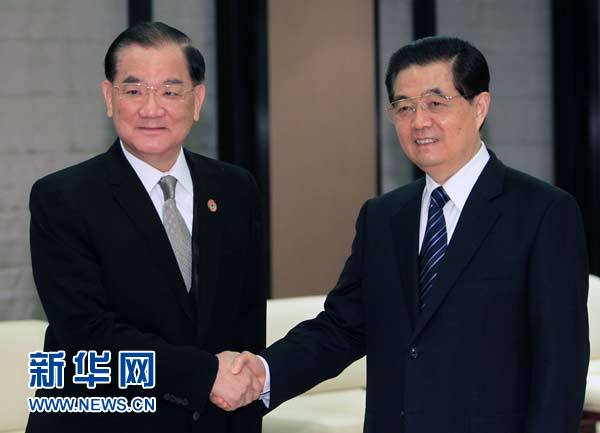11月13日,中共中央總書記胡錦濤在日本橫濱會見中國國民黨榮譽主席連戰。新華社記者樊如鈞攝