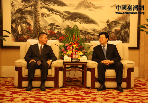 株洲市委常委、副書記龔鳳祥于9日晚會見了出席株洲市臺協成立大會的部分臺灣嘉賓,全國臺企聯常務副會長葉宏燈、株洲市臺資企業協會會長李秀娥等參加了會見。(中國臺灣網 楊永青 攝)