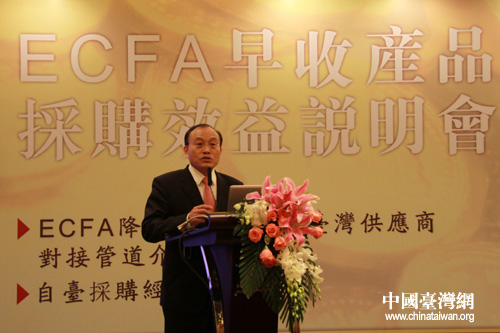 說明會邀請了商務部臺港澳司副司長康文、臺北世貿研究總監巫英臣、北京農產品流通協會秘書長王兢分別針對“ECFA降稅商機說明及臺灣供貨商對接管道介紹”、“ECFA優惠政策及早收清單效益”、“自臺采購經驗分享”等進行宣講及說明。