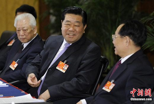 3月6日,全國政協主席賈慶林來到全國政協民革、臺盟、臺聯委員聯組討論現場,與委員們共商國是。中新社發 廖攀 攝