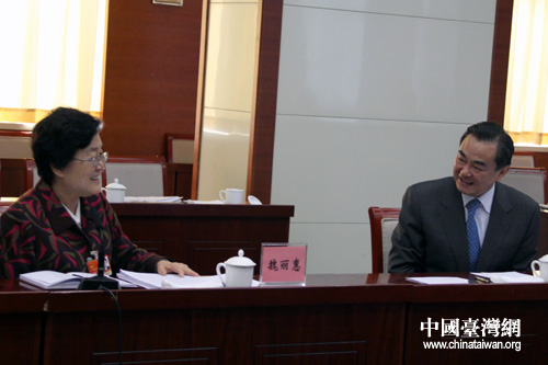 中國臺灣網3月8日北京消息 今天上午9時,中共中央臺辦、國務院臺辦主任王毅來到十一屆全國人大四次會議臺灣代表團駐地,參加臺籍人大代表對政府工作報告和“十二五”規劃(草案)的小組討論會,并聽取大家的意見、建議。(記者 王偉)