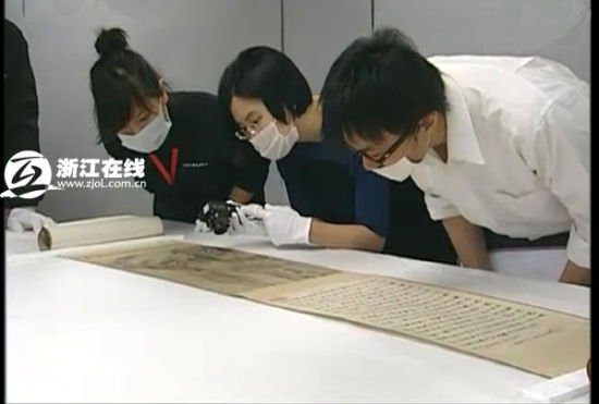 中國文物交流中心主任王軍與臺北故宮博物院副院長馮明珠等通過實時電視訊號,共同見證12件書畫“點交”過程。來自臺北故宮的4名專業人員與中國文物交流中心的專業人員對12件畫作逐一進行了細致的點交查驗。