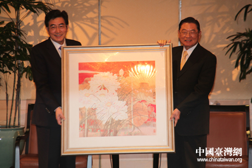 郭金龍向江丙坤贈送紀念品(中國臺灣網 趙輝 攝)