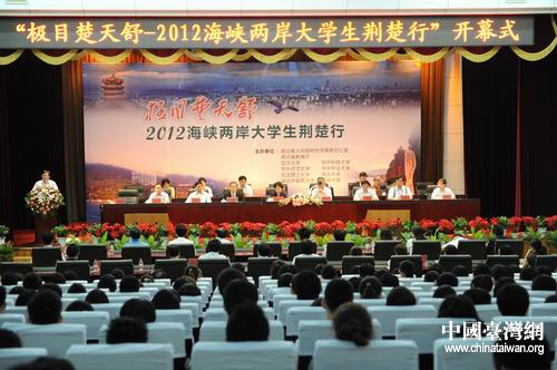 7月10日,“極目楚天舒·2012海峽兩岸大學生荊楚行”開幕式在武漢華中科技大學舉行。圖片來源:湖北省臺辦