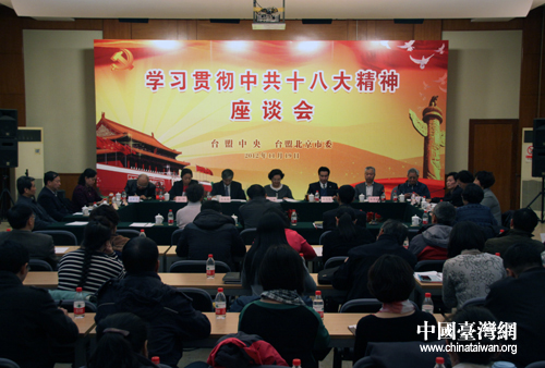 臺盟中央、臺盟北京市委11月19日下午在京聯合舉辦學習貫徹中共十八大精神座談會。(中國臺灣網 王怡然 攝)
