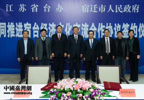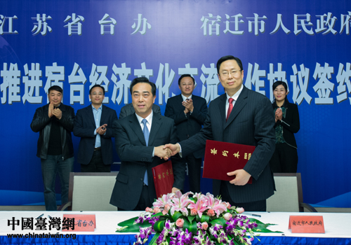 宿遷市人民政府與江蘇省臺辦簽訂共同推進宿臺經濟文化交流合作協議簽約現場。(圖片來源:宿遷市臺辦)