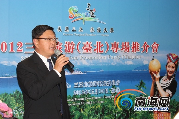 12月9日,三亞旅游推介會在臺北市舉行。三亞市副秘書長董永泉致辭(南海網記者馬偉元攝)