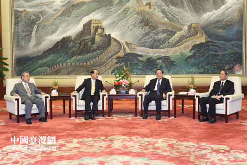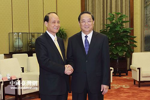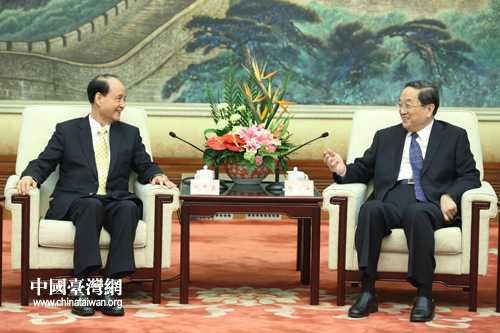 9月12日,全國政協(xié)主席俞正聲在北京人民大會堂會見臺灣海基會董事長林中森帶領的海基會董監(jiān)事參訪團一行。(中國臺灣網(wǎng) 陳佳慧 攝)