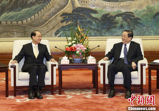 中新社北京9月12日電 (記者 路梅)中共中央政治局常委、全國政協主席俞正聲12日上午在人民大會堂會見了臺灣海基會董事長林中森率領的董監事參訪團一行。