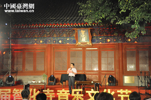 為弘揚中華民族傳統文化,加強兩岸文化交流,進一步宣傳與展示非物質文化遺產,由北京市文物局、北京市臺灣同胞聯誼會主辦,北京文博交流館承辦的第四屆智化寺音樂文化節于近日舉行。2013年9月16日在智化寺舉辦的“花好月圓”音樂晚會是此次音樂文化節的重要環節。(北京市臺聯 趙輝 攝)