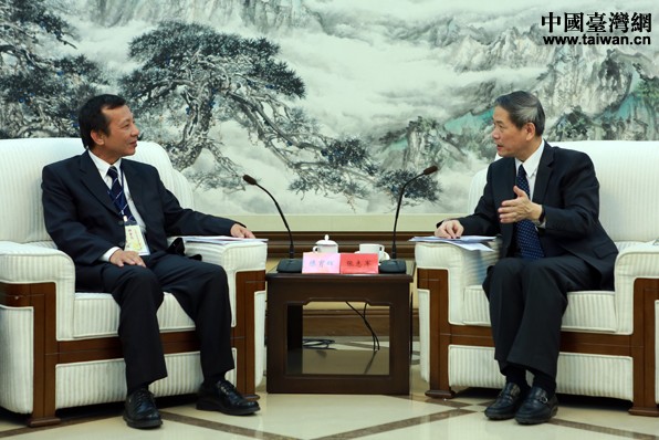 11月14日,張志軍在北京會見了臺南基層代表參訪團一行。(中國臺灣網 于斯文 攝)