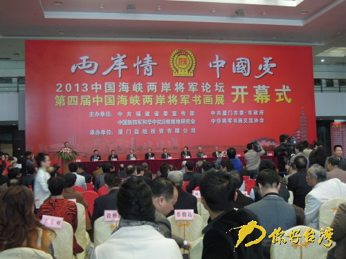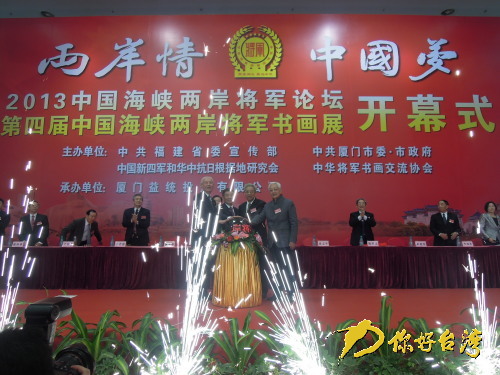 29日上午,以“兩岸情中國夢”為主題的“2013中國(廈門)海峽兩岸將軍論壇”暨“第四屆中國海峽兩岸將軍書畫展”在廈門文化藝術中心博物館開幕。書畫展得到海內外藝術家的熱情支持,參展書畫作品共600多幅,是一次以兩岸將軍書畫作品為主題,海內外名家傾情參與、百花齊放的文化盛宴。