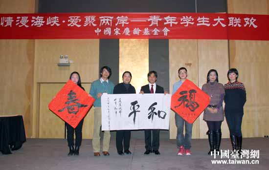 中國臺灣網1月23日北京消息 受中國宋慶齡基金會邀請,臺灣十大杰出青年基金會、臺灣夏潮基金會組派的2014年寒假兩岸青年公益交流活動于18日在京啟動。作為活動之一“情漫海峽·愛聚兩岸”兩岸青年學生大聯歡會于22日晚間舉行。來自臺北科技大學、高雄大學等19所高校的60余名青少年與中國人民大學、中國地質大學、北京交通大學等40余名大學生,在農歷小年前夜,歡聚一堂,共同度過一個愉快難忘的夜晚。