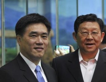 海協會會長陳德銘一行結束臺灣行,今日返京。圖為陳德銘會長(右一)與臺北市長郝龍斌(左一)合影。(網絡圖)