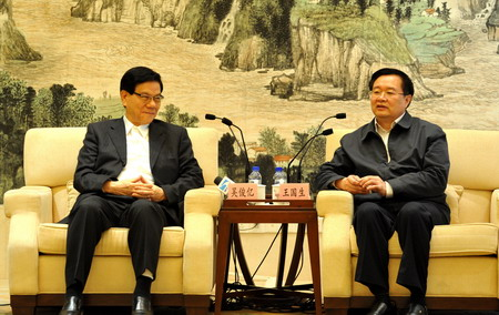 王國生省長與臺商吳俊億親切交談。(攝影:韓江波)