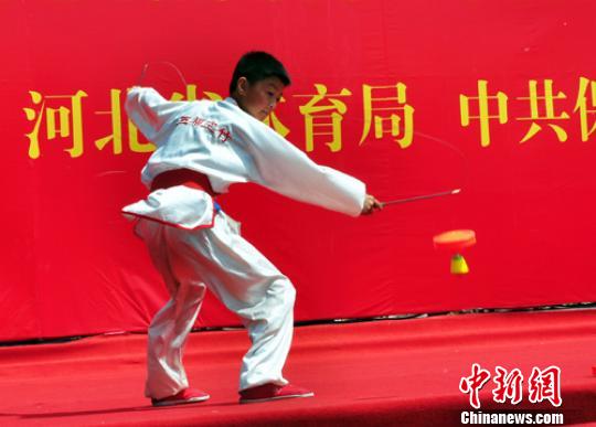 中新網保定5月16日電(呂子豪 于俊亮)16日,內地空竹大師吳春鳴及高紅星、陳秋雨夫婦,寶島臺灣空竹表演藝術家容沛辰、蔡保慶、許芳綺、陳姿萍等兩岸空竹運動高手亮相河北保定“國際空竹藝術節”,展抖空竹獨門絕技,力促空竹運動“升級”。