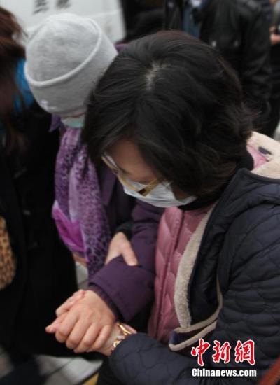 2月5日下午,臺灣復興空難罹難大陸旅客家屬搭機抵達臺灣桃園機場后,搭車趕往臺北市第二殯儀館確認遇難者身份。圖為大陸旅客的親屬在陪護下步入殯儀館。中新社發 路梅 攝